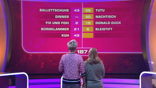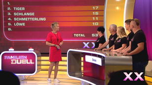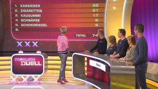 Augen zu und durch! Behält Sonnenschein Peter im Finale den Durchblick? Ziemlich knapp Schaffen die Herausforderer den Sprung ins Finale? Familie Oltmanns gegen Familie Landgraf Wer hat die passenden Antworten parat? Familie Landgraf ändert ihre Taktik Nächstes Mal geht es um den Jackpot Die Frage ist nicht so einfach, wie sie scheint "Worüber bestimmt die Frau in einer Partnerschaft?" Die Schunks sind eine Rocker-Familie Familie Landgraf will die Punkte klauen Im Finale muss es besser laufen! Familie Landgraf hat es nochmal geschafft Jetzt ergreift Familie Yavuz die Chance Familie Landgraf hat einen schlimmen Hänger Familie Yavuz vs. Familie Landgraf Beim Familienduell wird ein Ständchen gesungen Familie Wagner ist siegessicher Wendet sich in dieser Runde das Blatt? Wer klaut hier wem die Punkte? Familie Wagner vs. Familie Landgraf Familie "Zitteraal" im 2. Finale Die Mädels + Horst haben es doch noch geschafft Möp, Möp! Im Finale hagelt es doppelte Antworten Die Herausforderer freut's Martin steht auf der langen Leitung Hallo, I Bims Familie Landgraf! Läuft bei den Herausforderern in Runde 1 Familie Nacik versucht's nochmal Marko liegt mal wieder knapp daneben Musikalische dritte Runde Familie Nacik geht wieder in Führung Es weihnachtet sehr Familie Löw stellt sich dem Familienduell Familie Nakic im Finale Bekommt Kathrin den Kreativ-Bonus? Funkel, funkel, kleiner Stern Martin und Camen zocken um die doppelte Punktzahl Schwerer Start Die Familien stehen auf dem Schlauch Knacken sie heute die 200 Punkte? Die Basiles sind zum ersten Mal im Finale Jetzt punkten die Basiles Das Glück verlässt die fünf Schwestern Familie Basile hofft auf den Punkteklau Die Kozyra-Schwestern holen Inka zu sich Die Andreanis wollen die 200 Punkte knacken Philipp muss jetzt die richtigen Antworten geben Die Champions geben alles Die Top 3 macht den Andreanis zu schaffen Die Andreanis müssen zittern Familie Gatz will wieder Punkte klauen Wer reagiert schneller? Philipp spielt mit Werner Wer zieht heute ins Finale? Neue Runde, neues Glück Erreicht Hans die 200 Punkte? Langsam kehrt wieder Ruhe ein Die Familie Yalciner verliert ihren Biss In dieser Runde geht es um alles - wer zieht ins Finale? Jetzt wird es knapp für die Champions Familie Yalciner braucht den Punkteklau Müssen die Yalciners zittern? Familie Gatz kennt die Regeln nur zu gut Familie Yalciner will auch heute gewinnen Die Champions sind schon zum dritten Mal dabei Ganz schön knapp Knackt Conny die 200 Punkte-Marke? Daumen drücken für Familie Wacker Gabi und Conny zocken im Finale um 3000 Euro Sicher ins Finale? Familie Fuderer setzt auf Kondome Familie Wacker räumt ab Können die Champions noch aufholen? Wie auf dem Rummelplatz Die Herausforderer schlagen sich wacker Familie Wacker gegen Familie Fuderer Klappt der Punktklau in Runde 1? Sie wollen den Jackpot Wie viele Punkte macht Nina? Knacken sie erneut die 200 Punkte? Familie Fuderer ist wieder im Finale Wer steht gleich im Finale? Nun werden die Punkte verdreifacht Reimen kann nun zum Sieg verhelfen Die Lausitzer Seesterne kriegen ihre erste Chance Alte Hasen beim Familienduell Familie Fuderer will die Herausforderer nach Hause schicken Nina will die 200 Punkte knacken Die 3000 Euro sind so nah und doch so fern.. Schnappen sie sich die 3000 Euro? Die Fuderers sind schon das dritte Mal im Finale Wer kommt ins Finale? In der letzten Runde werden die Punkte verdreifacht Die Beches wittern ihre Chance Familie Fuderer gerät ins Stocken Wie oft gelingt ihnen dieses Manöver? Die Champions wollen Punkte klauen