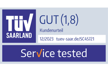Der TÜV Saarland vergibt bei seinem Test aus Dezember 2023 für die GenialCard das Kundenurteil „Gut“ mit der Note 1,8.