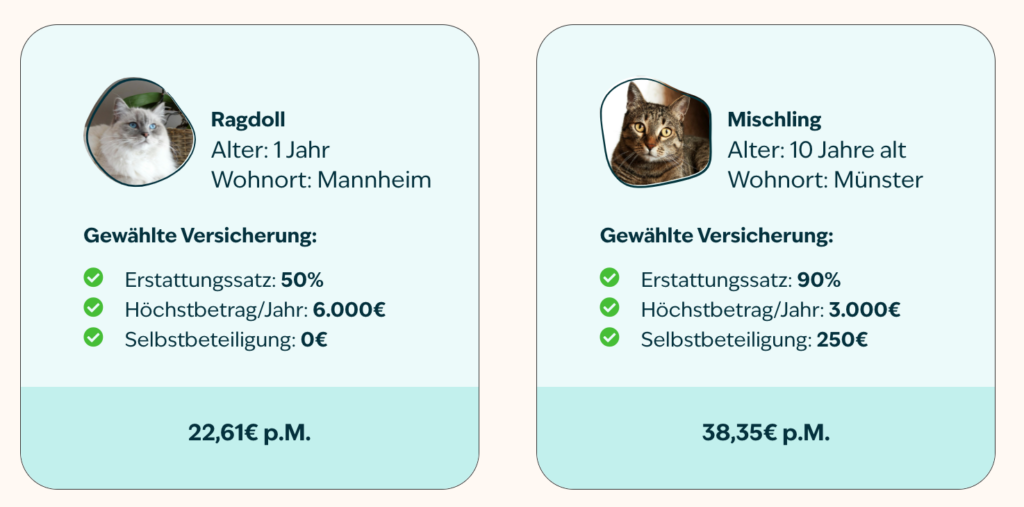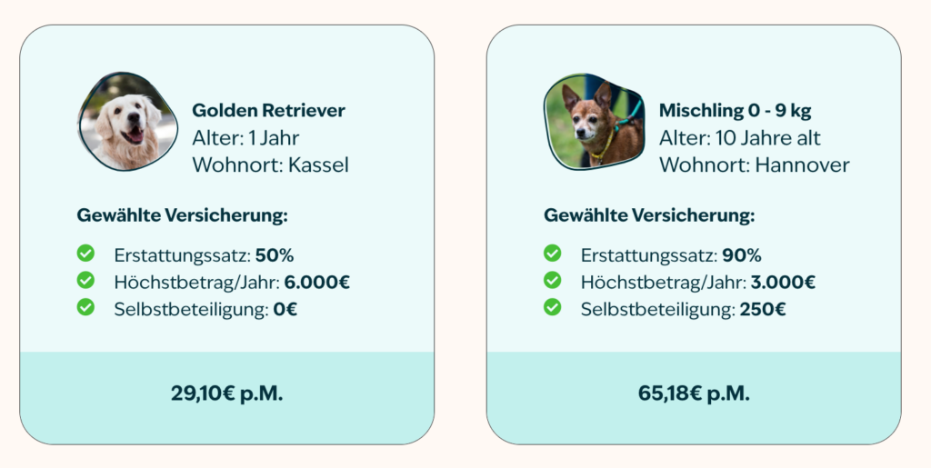 Eine Tierversicherung kostet im Durchschnitt zwischen 15€ und 70€ im Monat. Hier sind einige Beispiele für die Figo Hundeversicherung: