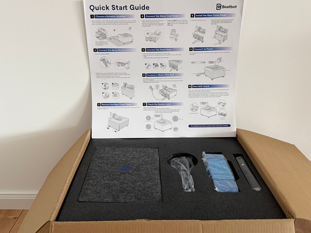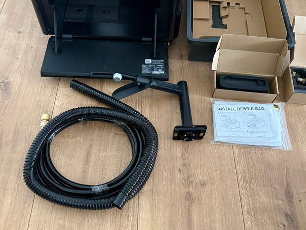 Der Lieferumfang ist umfangreich und wirkt auf den ersten Blick technisch, weil die Station mehr ist als ein Ladepad. Enthalten sind Roboter, AstroRinse-Station, AquaRefine-Kit sowie Zubehör und Verbindungsteile: Schrauben, PTFE-Dichtband, Bodenschlüssel, Schlauchklemme, 3-Wege-Verbinder, T-Schlüssel, Retrieval-Haken, ein Einlassschlauch mit Schnellanschluss und ein Ablaufschlauch. In der Praxis hilft es, dass das Set damit als Komplettsystem ausgelegt ist und ihr nicht erst passende Schläuche zusammensuchen müsst.