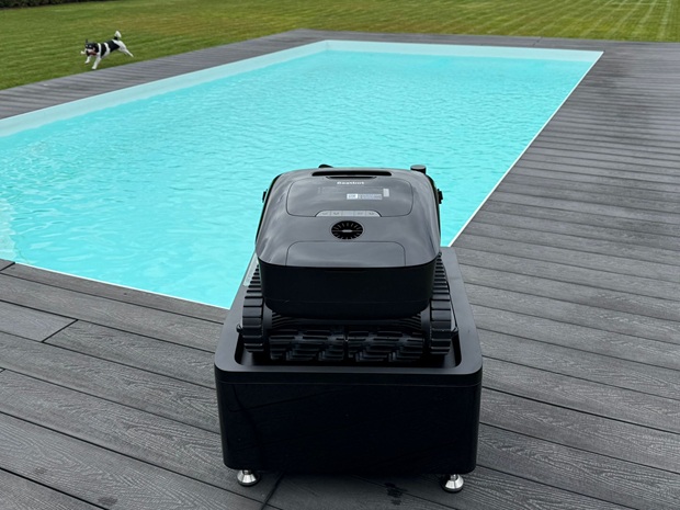 Der Roboter misst 44,2 × 44,0 × 28,5 cm und wiegt 13,1 kg, die Station misst 63,7 × 53,5 × 56,0 cm und wiegt 19 kg. Damit braucht das System spürbar mehr Stellfläche als Modelle mit kleiner Ladeplattform. Für euch heißt das, dass ihr vor dem Kauf einen festen, stabilen Standort einplanen solltet, idealerweise nahe am Pool, damit Transportwege kurz bleiben.
