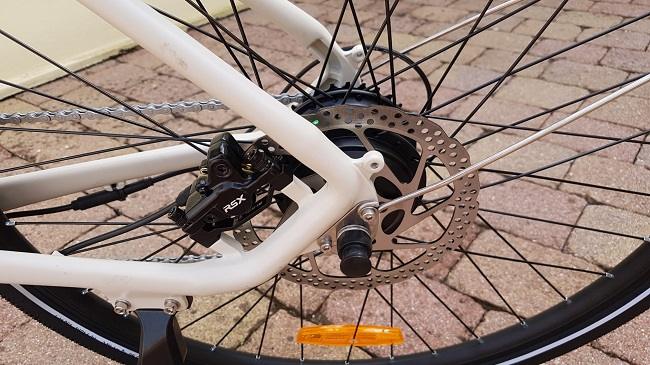 Die Verarbeitung und die Qualität der verbauten Komponenten, insbesondere die hydraulischen Scheibenbremsen und die 7-Gang Shimano-Schaltung, hinterlassen einen positiven Eindruck und versprechen Langlebigkeit. Auch die Leistung des 250W-Heckmotors ist für den städtischen Einsatz völlig ausreichend.