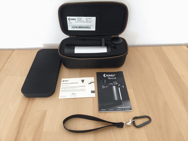Beim Auspacken achte ich zunächst darauf, wie reisefertig das Set wirklich ist. Im Karton liegt die Mühle zusammen mit dem Transportcase und der Bedienungsanleitung. Das Case ist für mich mehr als ein nettes Extra, weil es die Mühle nicht nur vor Kratzern schützt, sondern auch verhindert, dass Kurbel und Cup im Rucksack gegeneinander arbeiten. Die Präsentation ist funktional und auf Schutz ausgelegt, nicht auf Show. Das passt zu einer Mühle, die sich als Präzisionswerkzeug positioniert.