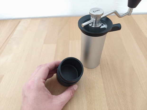 Am fünften Tag teste ich den Reise-Realismus, indem ich die Kapazität von ca. dreißig Gramm als festen Rahmen akzeptiere. Für Einzelportionen und kleine Rezepte ist das plausibel und passt zur Positionierung als mobile Mühle. Für größere Filterrezepte wird es dagegen schnell knapp, weil man dann in mehreren Durchgängen mahlen muss. Das ist eine Einschränkung, weil es Zeit und Rhythmus bricht. Gleichzeitig ist es bei einem kompakten 50-mm-Zylinder kaum anders zu erwarten, und wer ohnehin solo oder zu zweit brüht, merkt das im Alltag weniger.