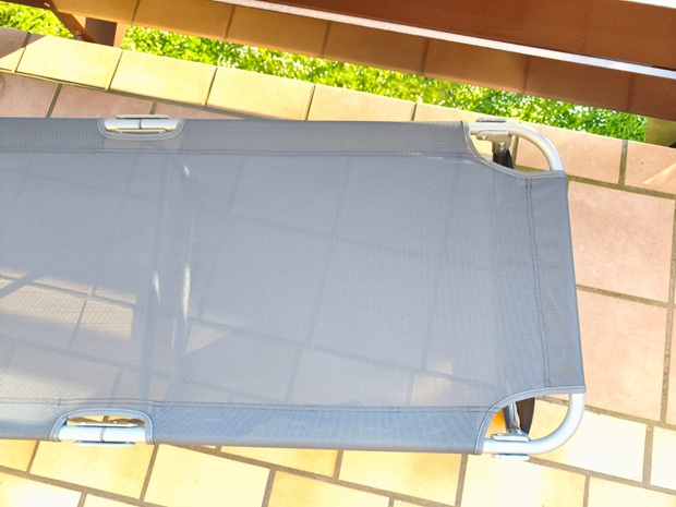 - Komfort im Alltag: Liegegefühl ohne dicke Auflage, Wärmeentwicklung des Gewebes in der Sonne, Nutzen der schmalen Breite (53 cm) im Verhältnis zu Komfort