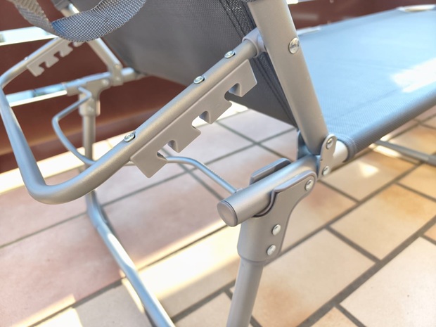 - Rückenlehne: verstellbar, vier Winkel 130° / 150° / 170° / 180°