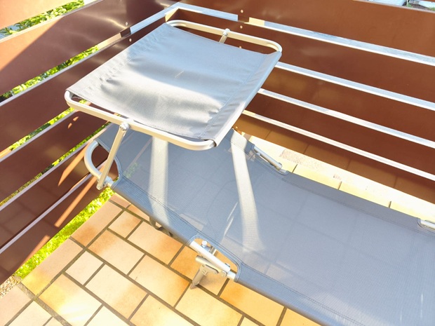 „Das Sonnendach ist für mich der Unterschied zu einer normalen Klappliege, aber bei tief stehender Sonne stelle ich es öfter nach, als ich zuerst dachte.“