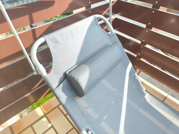 Sie eignet sich für beides, weil die Rückenlehne vier Winkel bietet, nämlich 130°, 150°, 170° und 180°. Zum Lesen ist die 130°-Position am naheliegendsten, während 170° und 180° eher fürs Dösen und flaches Sonnenbaden gedacht sind. Das abnehmbare Kopfkissen hilft dabei, den Nacken in mehreren Positionen sinnvoll zu unterstützen.