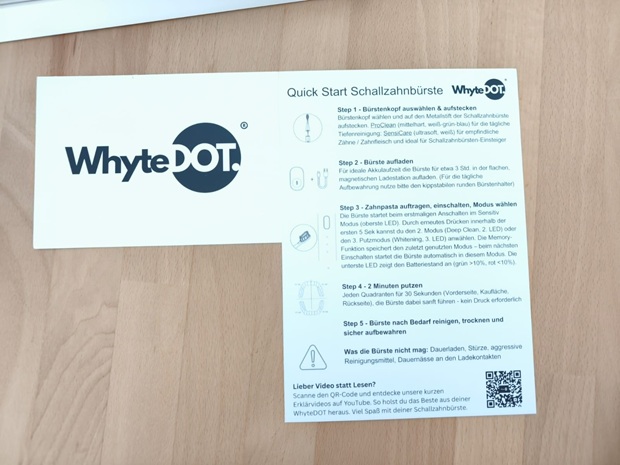 Wenn ihr sehr empfindliches Zahnfleisch habt, kann ProClean am Anfang zu intensiv wirken. Das lässt sich aber gut abfedern, indem ihr zunächst bei SensiCare bleibt oder den Sensitive-Modus priorisiert, denn WhyteDOT bietet hier bewusst zwei Charaktere statt „one size fits all“. Positiv finde ich, dass ProClean laut Hersteller explizit auch für Zahnspangen, Implantate und Zahnersatz gedacht ist, was zumindest als Nutzungsszenario sinnvoll benannt wird.