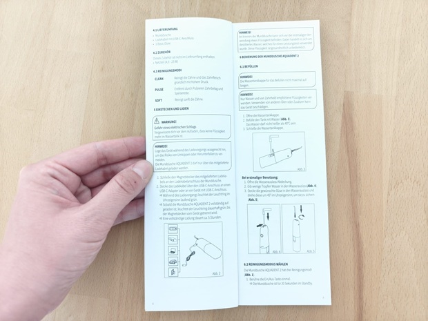 - Verpackung & Lieferumfang: Wie sicher ist alles verpackt, wie vollständig wirkt der Inhalt im Verhältnis zum Anspruch einer Reise-Munddusche, und wie klar sind die Basics erklärt.