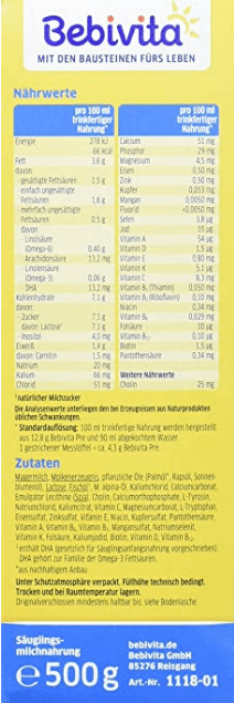Hierbei lohnt es sich zu überprüfen, ob die Milch nur die gesetzlich vorgeschriebenen Nährstoffe enthält oder ob diese auch weitere hinzufügt. Gesetzlich vorgeschrieben ist bei Anfangsmilch DHA, eine Fettsäure aus der Omega-3 Familie. Bei Folgemilch ist auch Vitamin C, D und Eisen laut Gesetz verpflichtend für die Zusammensetzung. Qualitativ hochwertigere Babymilch fügt oft Nährstoffe hinzu, die nicht verpflichtend für den Hersteller sind.