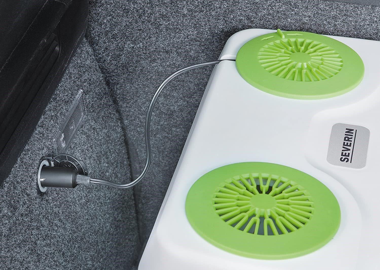 Die Kühlbox mit dem 12 Volt Anschluss ist für den Zigarettenanzünder-Anschluss im Auto gedacht. Sie können den Stecker der Kühlbox einfach dort hineinstecken und schon werden Ihre Speisen und Getränke gekühlt.